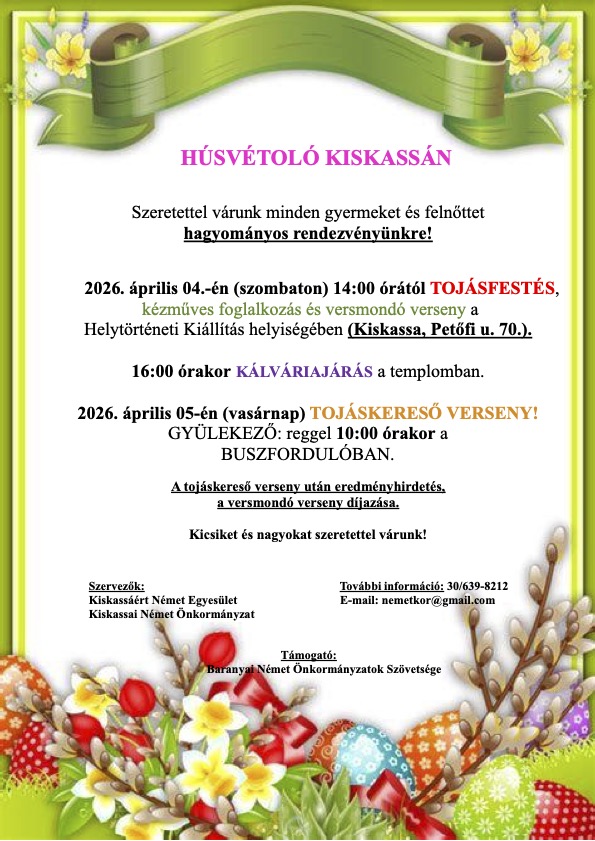 Meghívó Írta: Czigány István | 2026-03-31 - 16:32 |2026-03-31 Kiskassáért Német Egyesület Könyvjelzőkhöz Közvetlen link.
